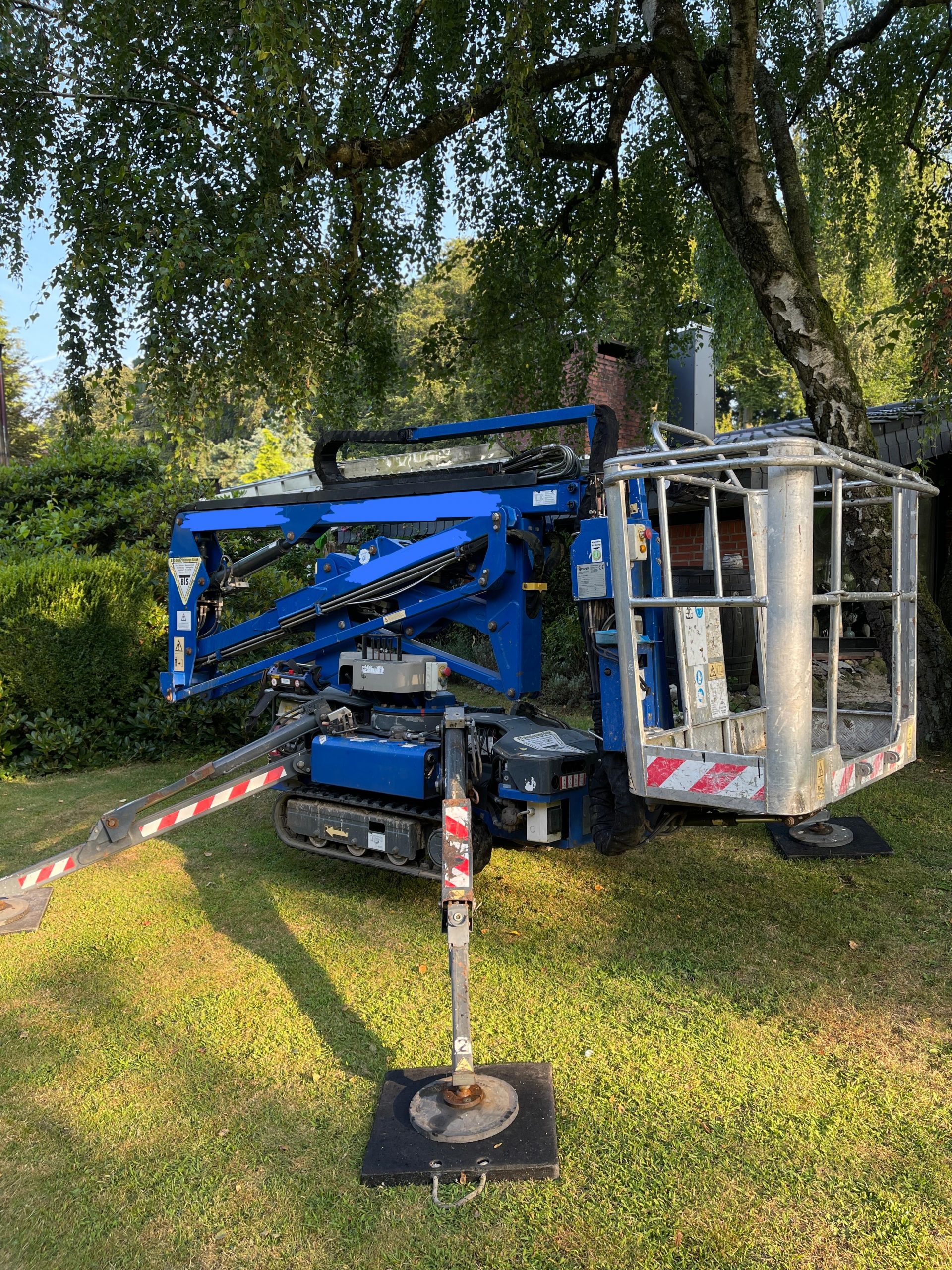 Steiger mit Kettenantrieb vor einer Birke