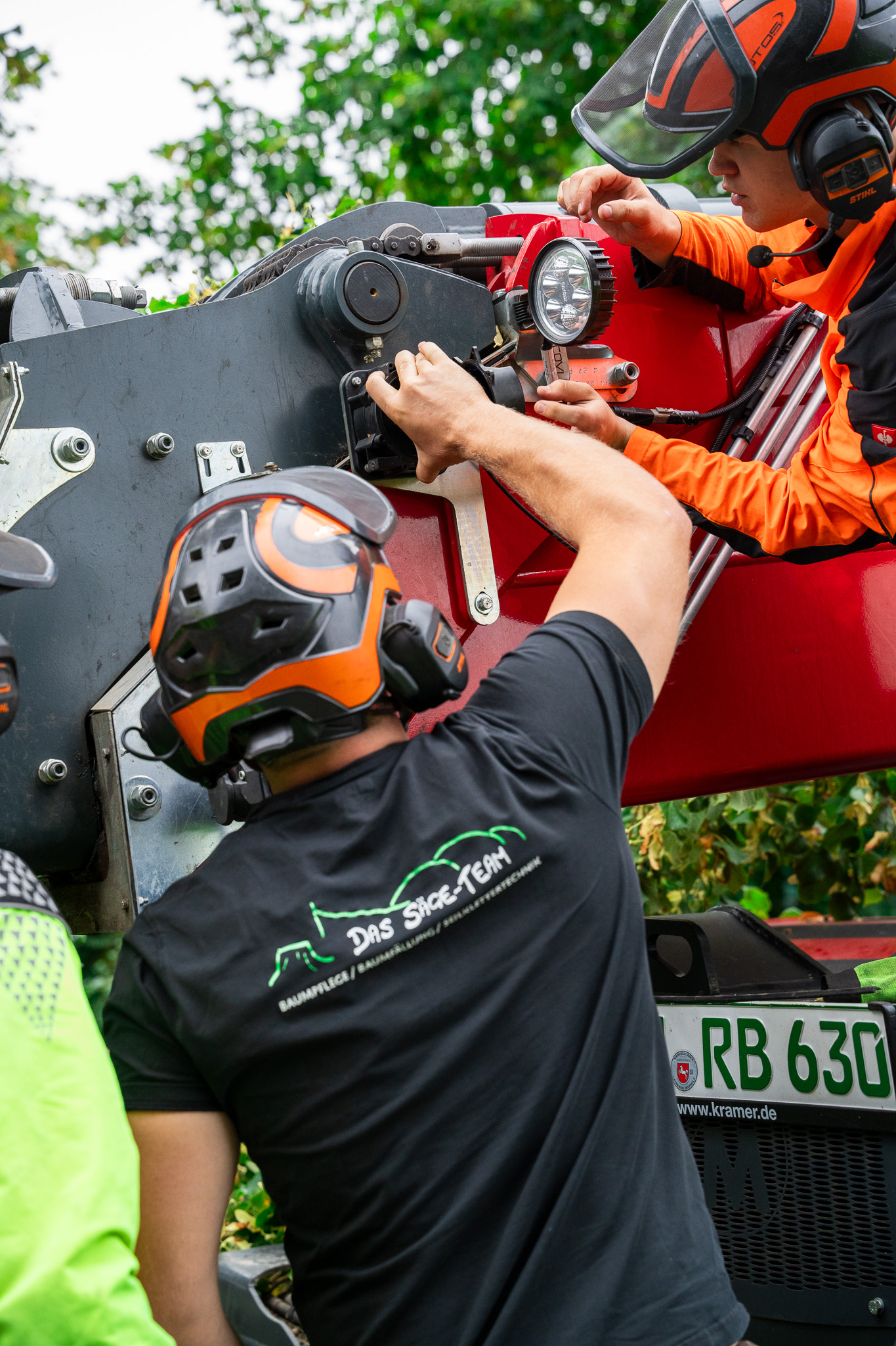 Nahaufnahme Reparaturarbeiten am Magni Fällkran