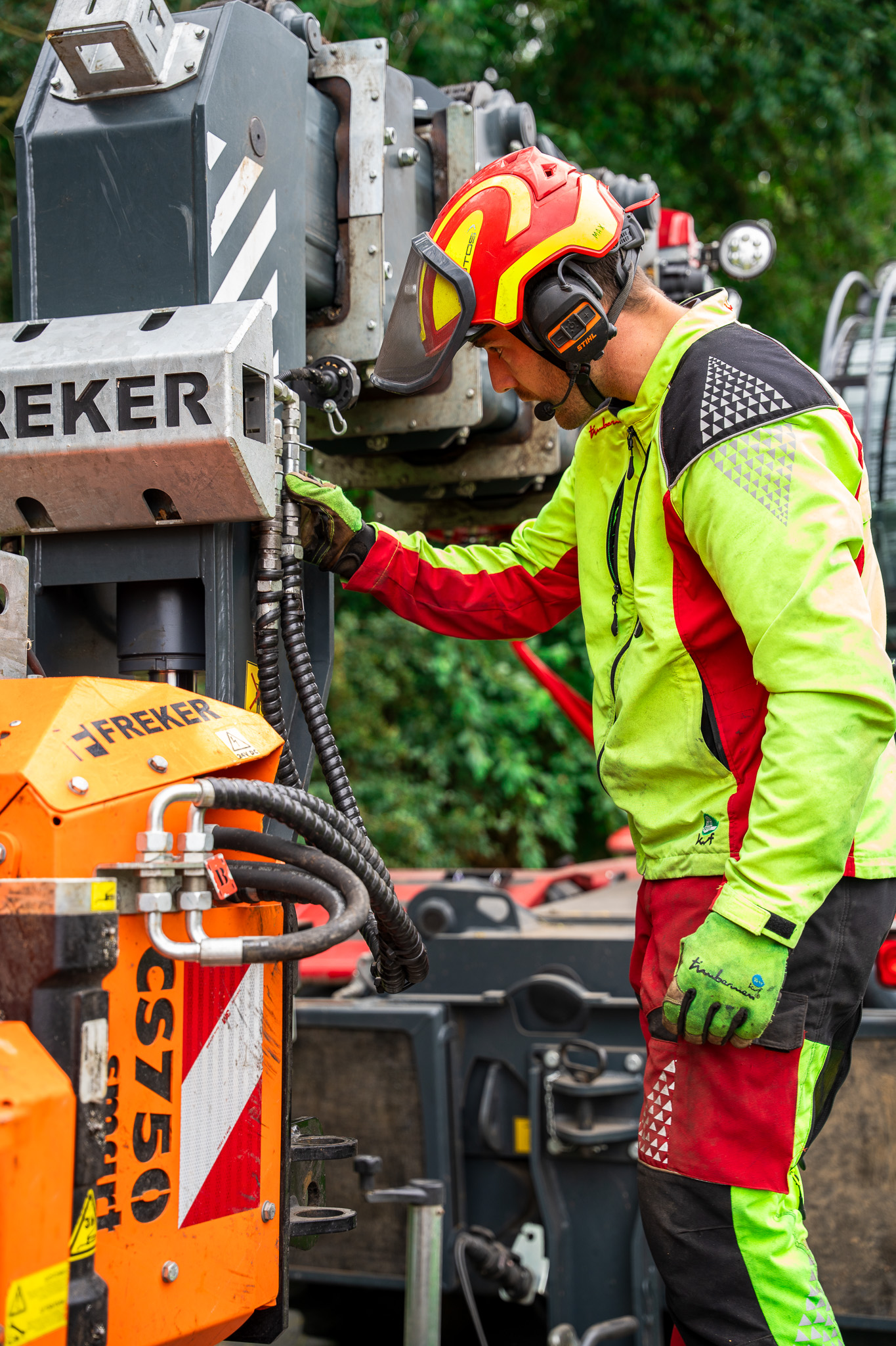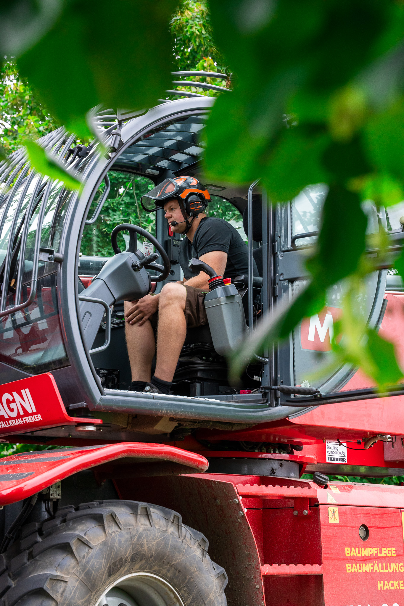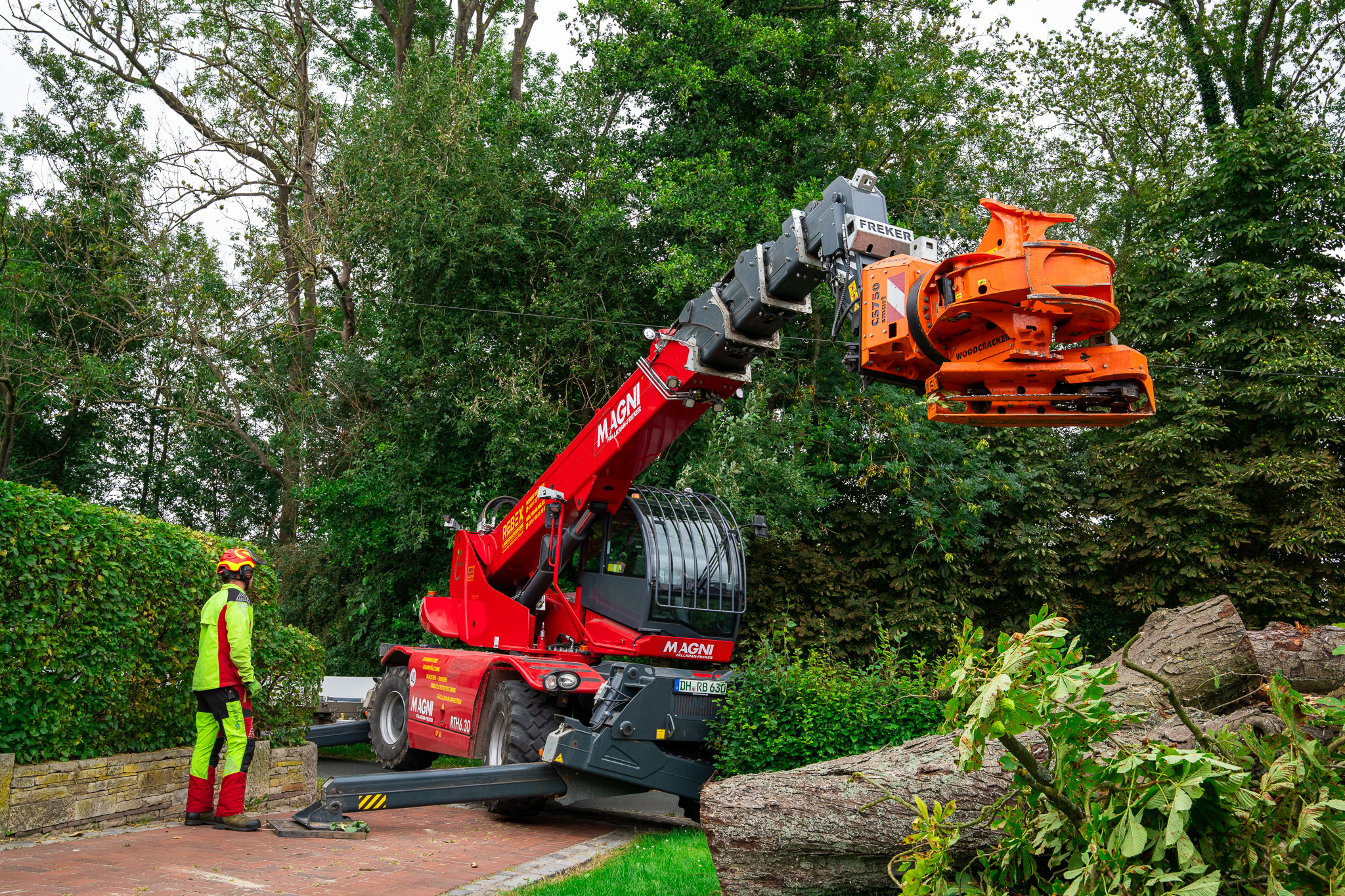 Magni Steiger bei der Arbeit. Hebt Baumstamm